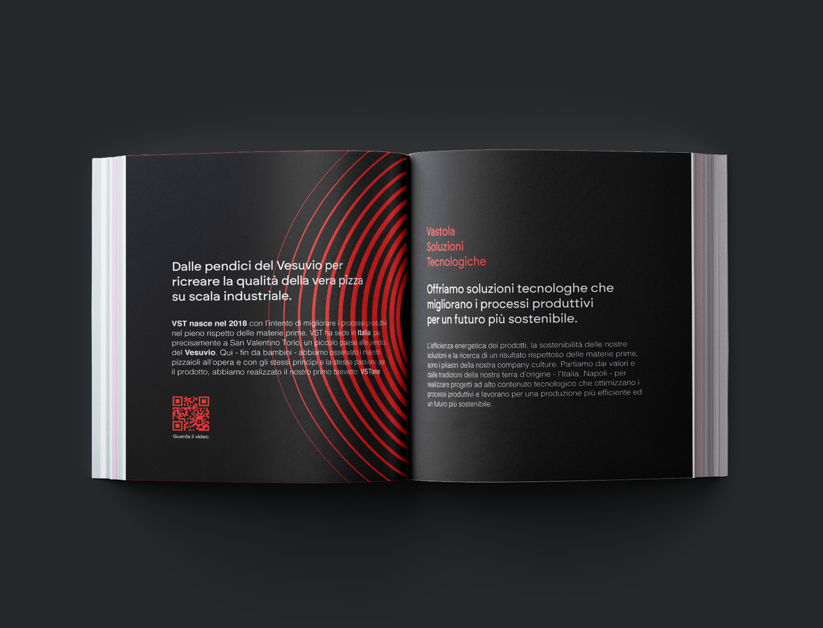 Un progetto di re-branding e valorizzazione di un brevetto industriale. Vstone è l’invenzione destinata a portare le caratteristiche della pizza verace napoletana nella produzione industriale, su scala globale. Il compromesso tra il calore della pietra refrattaria made in Sud, unito alla concretezza tecnica dell’acciaio sono lo statement dal quale origina l’impianto visivo: il rosso domina con il carattere ambizioso dell’impresa mentre forme concentriche irradiano una vision che dal centro si diffonde all’ecosistema circostante. Un progetto di branding già lanciato in ambito internazionale.